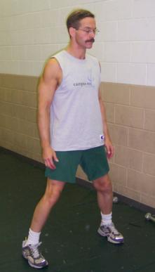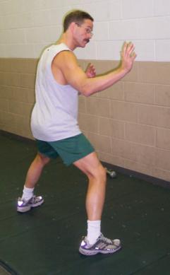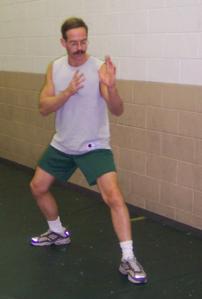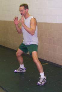 Where to use it. This is used either in transition from one stance to another or when it is necessary to move your opponent along a line 45 degrees to your front. It is useful for drawing your opponent off balance and for dropping your weight straight down ("corkscrewing" as we sometimes call it since it mechanically is a screw). It is most stable along the axis of your front and least stable at 90 degrees to this. This stance seems weird at first, but is actually extremely useful.