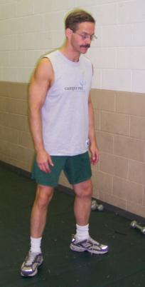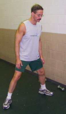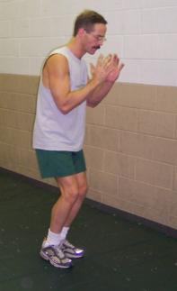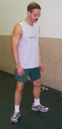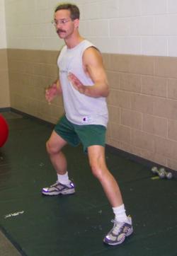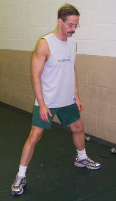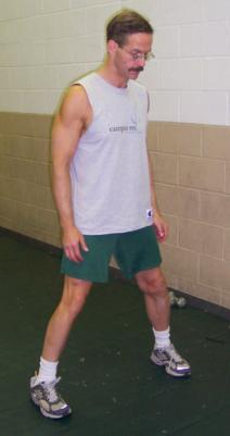 Walking: Shiko Walking in this stance is called "knee walking" or sometimes the "samurai walk". The japanese is shiko It is easiest to describe this by example. Assume that your right foot is back. To advance, rock down to your left knee as you bring your right leg up, putting the sole of your right foot on the ground. The hips must rotate so that your belt knot is facing 11 o'clock. You are now in han tachi on the other side. As you move, you should imagine that your ankles as loosely bound together so that they cannot get apart.