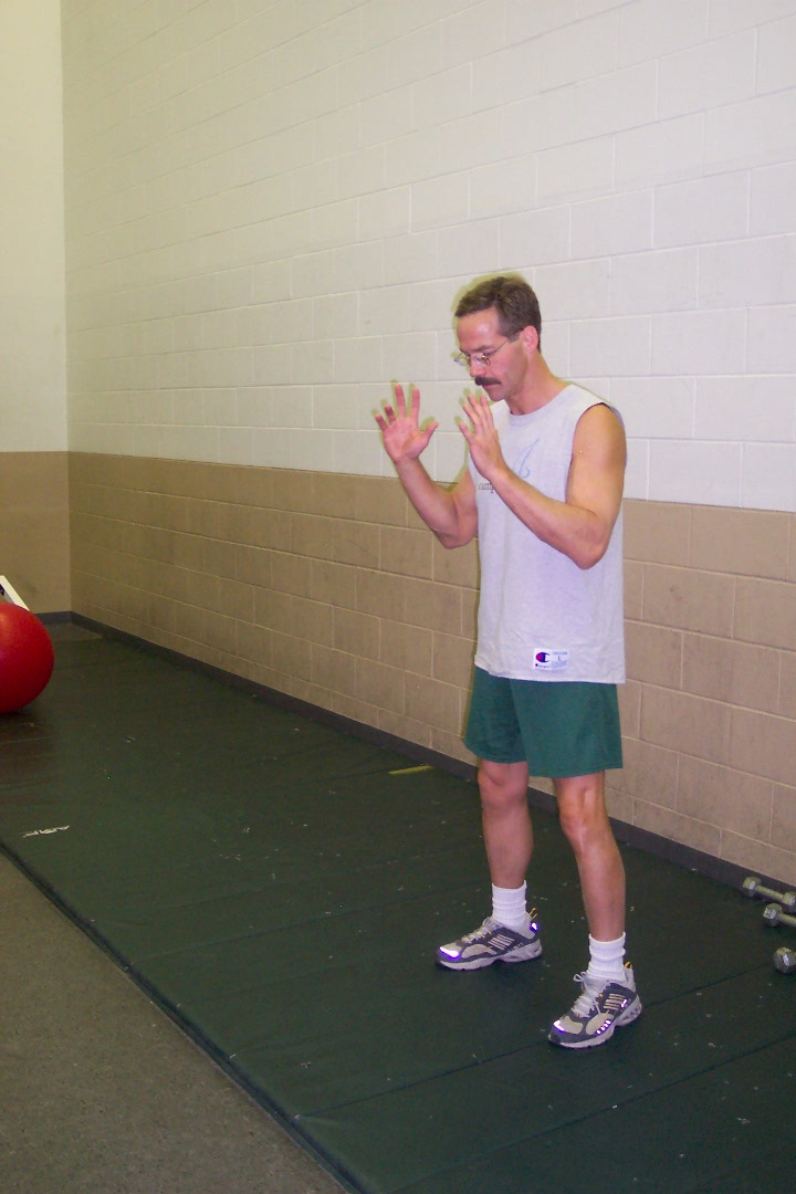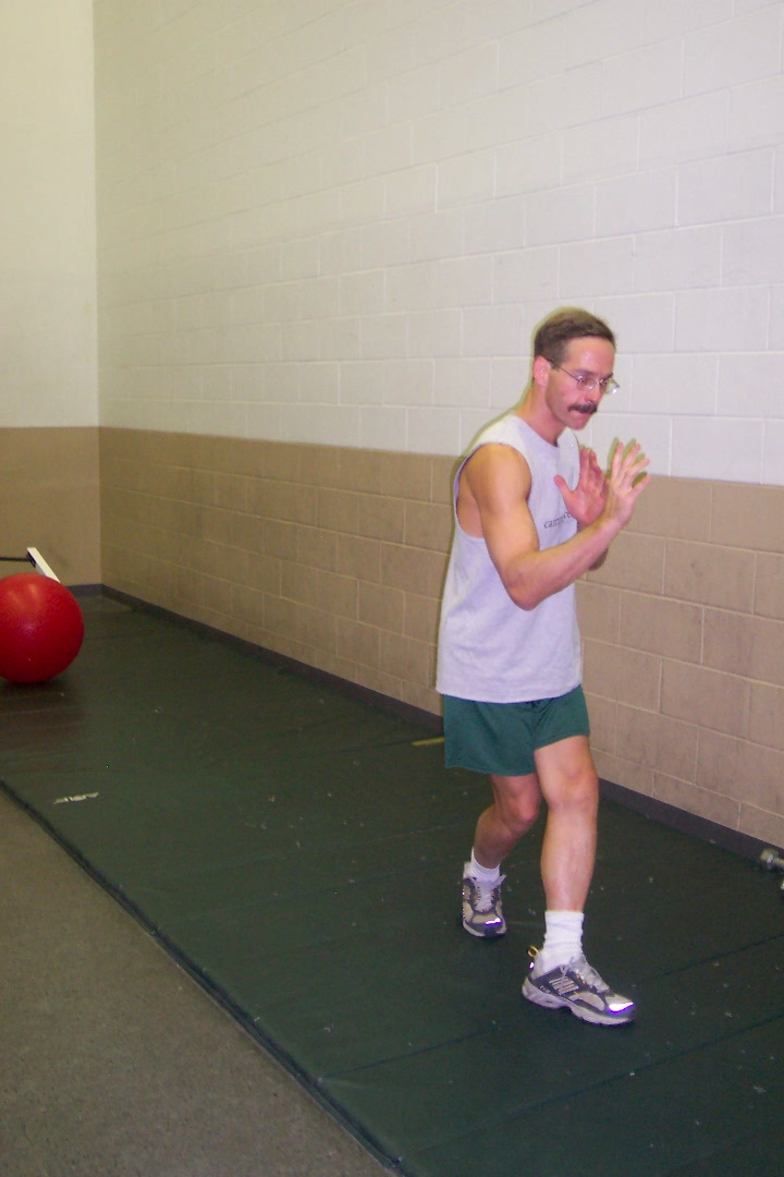 A few other concepts refer to structure. We define a path to be an alignment of the skeleton to transmit force from one point to another through the body. For instance, if you push on a wall with one hand and lift a foot, there is a path through your arm, across your back and down your leg. Any path the has one end on the ground is called root. So to do a bench press, you must have proper root, indeed, you can get injured if you are not in the correct position. Almost the only thing that a beginner should be concerned with is developing root. Root comes from the correct angle of the hips and legs, so this depends on the incoming forces and how you meet them. Reread that line. Do it again. You cannot have root that is independent of the situation. Varying the height of your stance varies the angles you need to maintain root. The best way to develop it is by lots of practice alone and then hands-on experience. This is not to say that self practice is wrong, but is merely insufficient by itself.