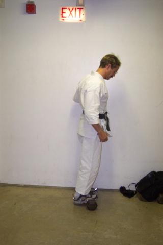 lightly holding something for support. Only the ball of your foot should be touching, the