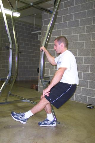 you, pick up one foot off the floor and lower yourself until your hamstring and calf