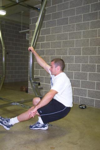 the ground, so that the feeling is like sitting down in a chair. If the knee tracks forward