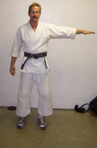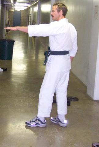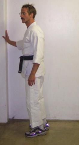 Stand so that your feet form an 'L'. The bottom of the 'L' is the leg
