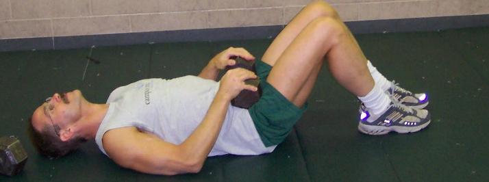 Ramping it up: Use two dumbbells. These are kept on the chest or
