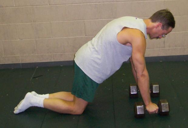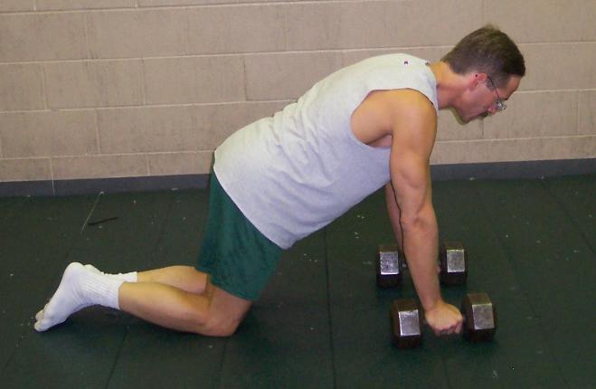 | Get on all fours. Hang onto bells or use your fists. |