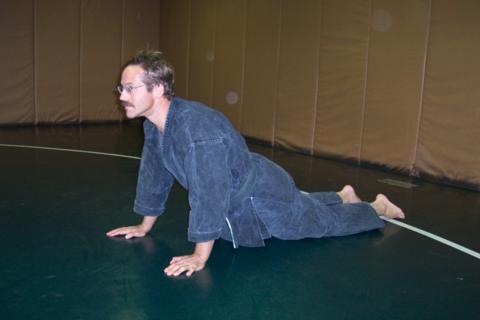 chest into the floor. This stretches the area just under the shoulder blades. You can even do this