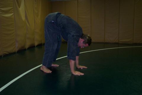 possible, keep your feet flat on the ground at all times. To exit this position, step forward with